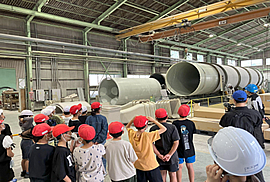 当日は立ち入り禁止区域をしっかりと作るなど安全確保した上で円筒槽の脱型を見てもらったり、ガラス繊維を触ってもらったりする体験型学習を多く取り入れました。